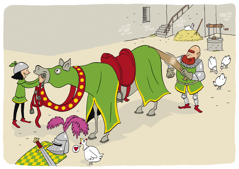 illustrations (extraits) pour Pépin, chevalier pressé, texte de Benoît Broyard, collection doc benjamin, Milan, avril 2016